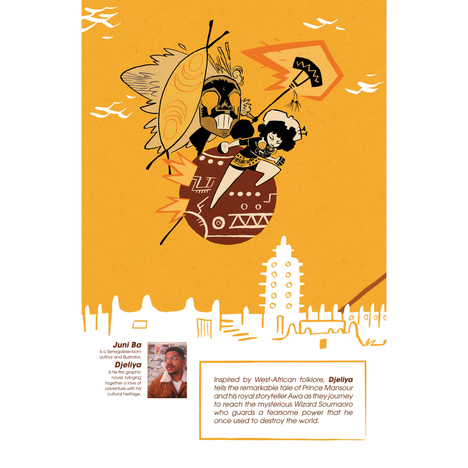 Inspired by West African folklore and stories handed down over centuries, Djeliya follows the adventures of Mansour Keita, last prince of a dying kingdom, and Awa Kouyaté, his loyal Djeli, or 'royal storyteller,' as they journey to meet the great wizard who destroyed their world and then withdrew into his tower, never to be seen again.