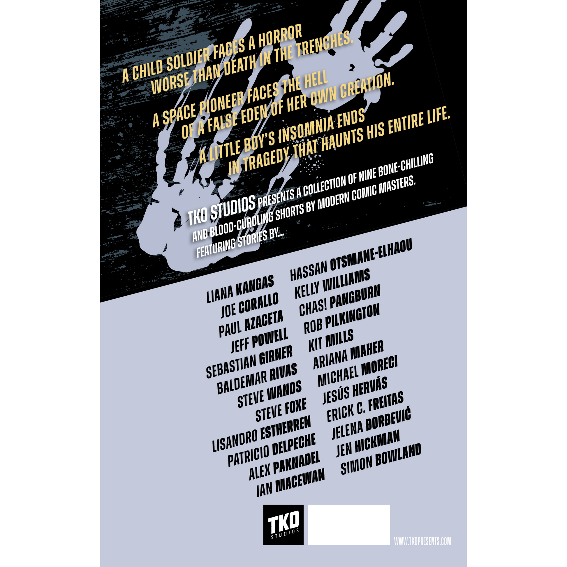 TKO Studios presents a collection of nine bone-chilling and blood-curdling shorts by modern comic masters.